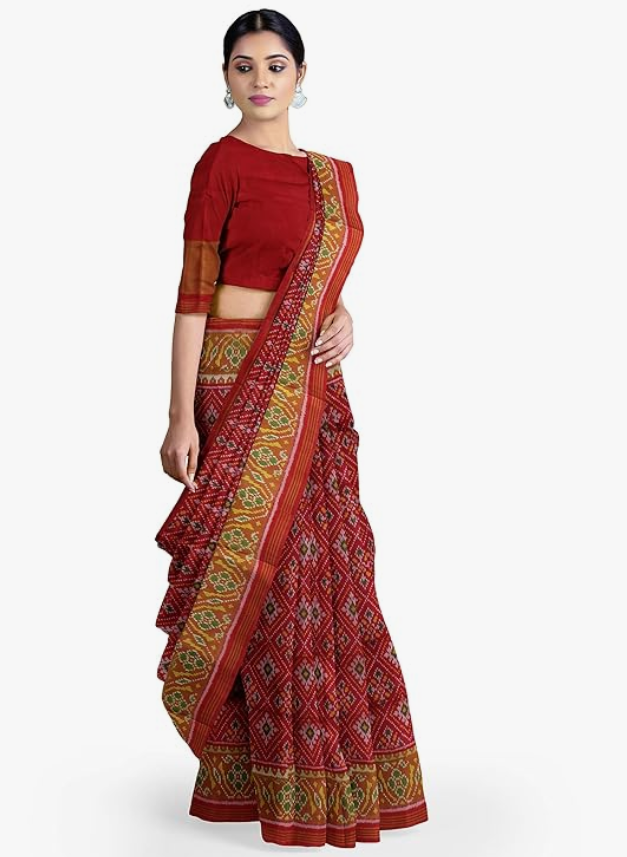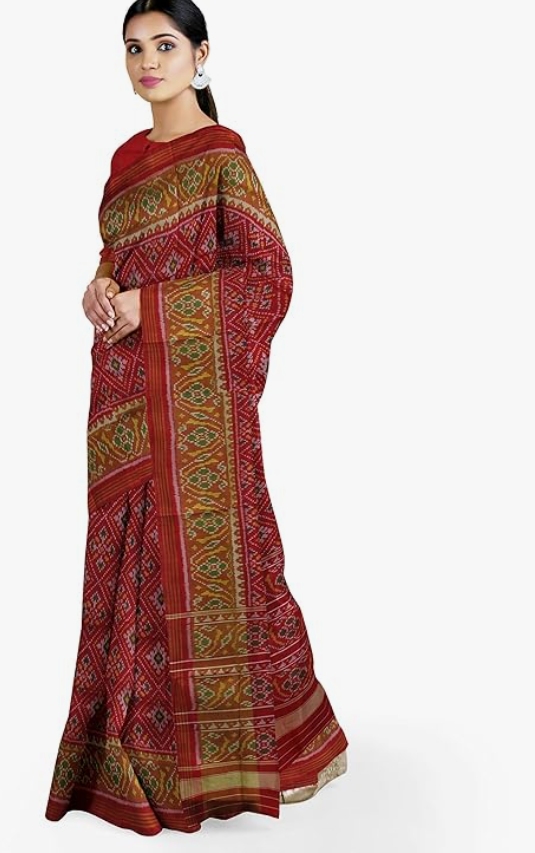 Women Dark Red Shaded Handloom Single Ikat Silk Patola Saree