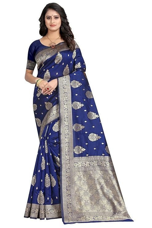 Women's Traditional Banarasi Art Silk Saree, Floral Motifs, Zari Border
