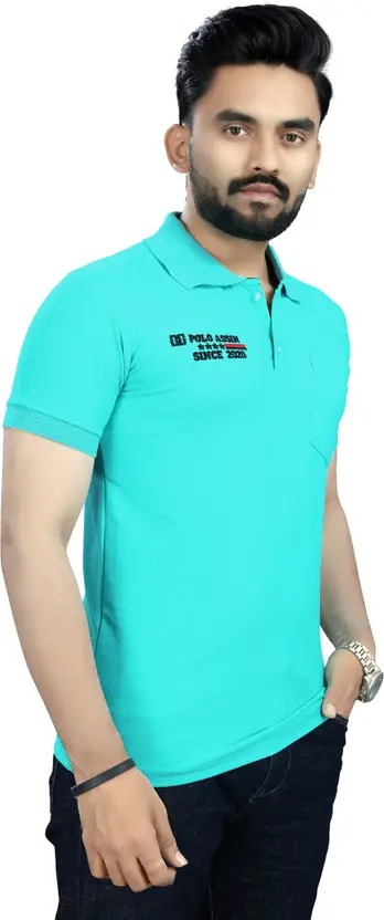 Men Printed Polo Neck Polycotton Green T-Shirt