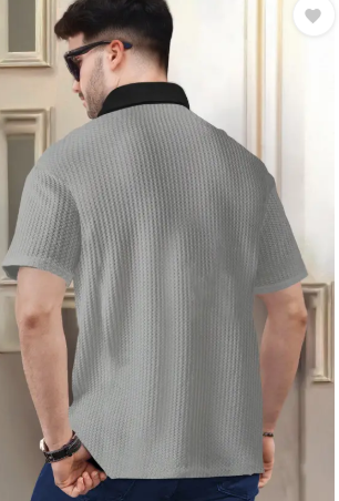 Men Self Design Polo Neck Cotton Blend Grey T-Shirt