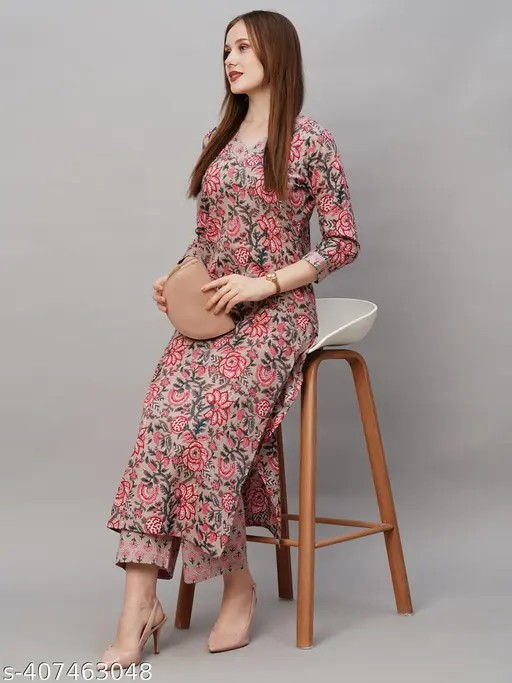 L (Bust Size : 40 in, Shoulder Size: 15 in, Kurta Waist Size: 36 in, Kurta Length Size: 42 in, Bottom Waist Size: 40 in, Bottom Hip Size: 42 in, Bottom Length Size: 40 in)