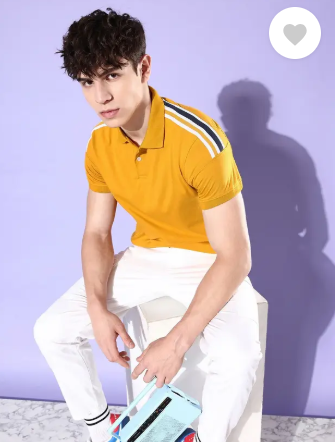Men Solid Polo Neck Pure Cotton Yellow T-Shirt