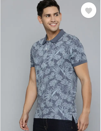 Men Printed Polo Neck Pure Cotton Grey T-Shirt