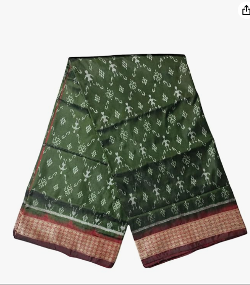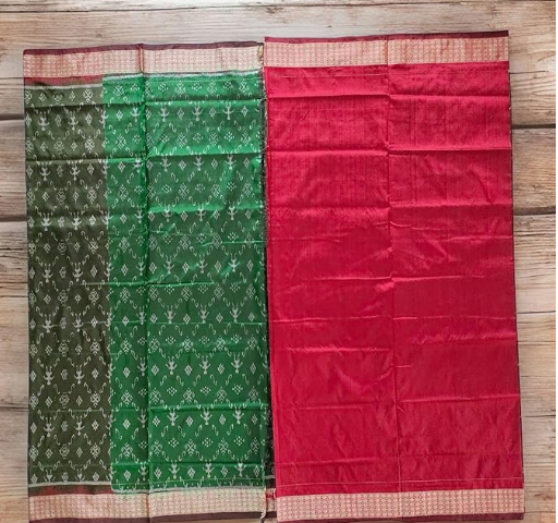 Pure Bandha Silk Saree in Olive Green & Deep Maroon |