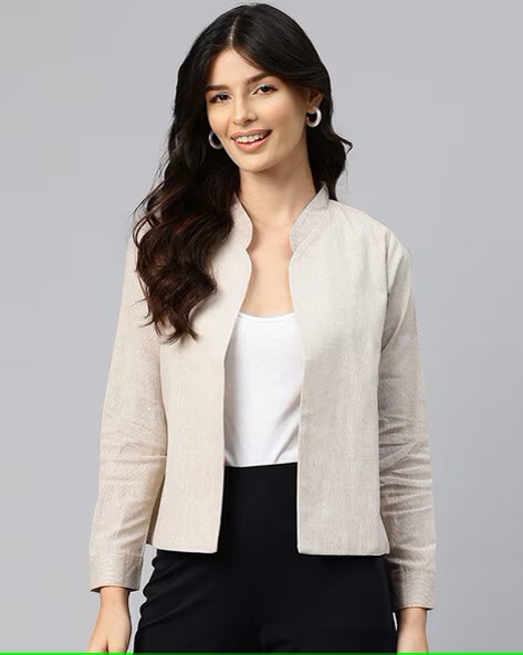 • Cottinfab Women Beige Solid Cotton Lightweight Open Front Jacket