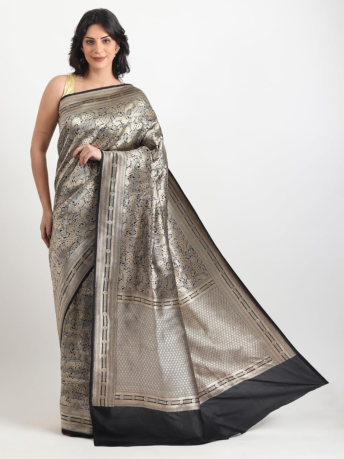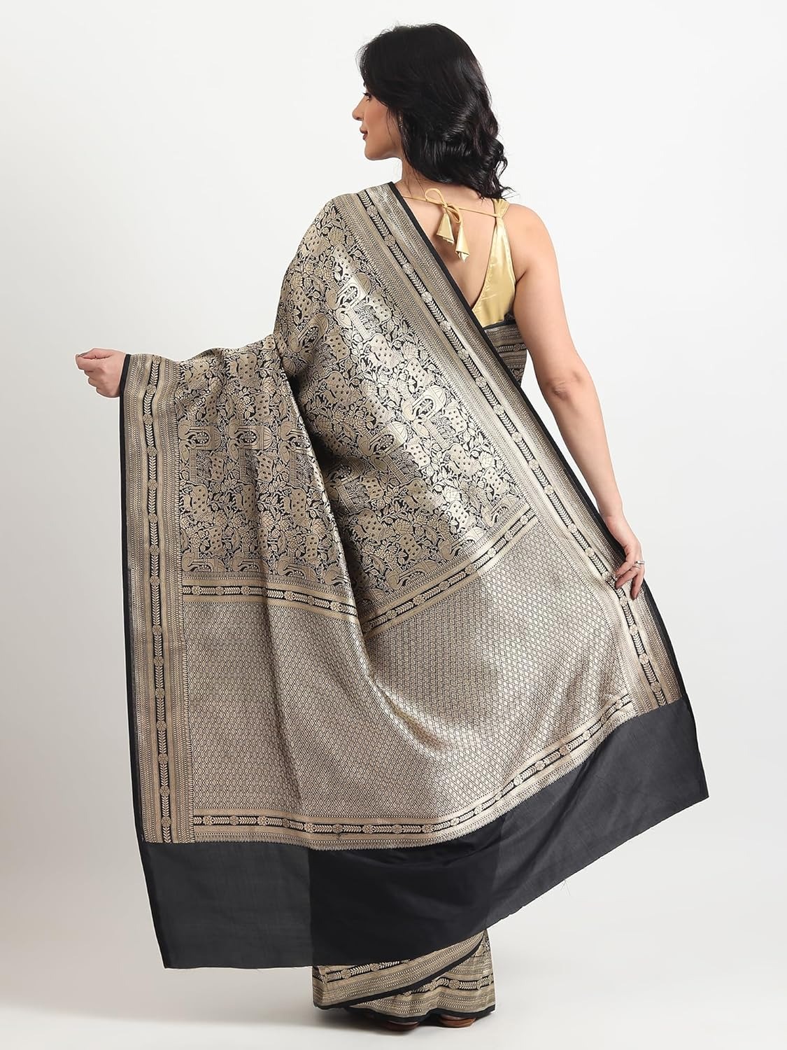 Pure Kattan Silk Hand Double Zari Weave Saree With Unstitched Blouse - Black