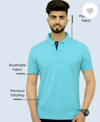 Men Solid Polo Neck Cotton Blend Blue T-Shirt
