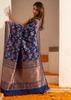 Step into a realm of floral enchantment with this exquisite Banarasi saree, a masterpiece woven with the artistry of generations. Like a vibrant garden in full bloom, the saree's intricate Meenakari floral jaal bursts with color and life. Each thread, woven with meticulous care, is a testament to the enduring spirit of Banarasi craftsmanship. Meenakari, the painstaking addition of