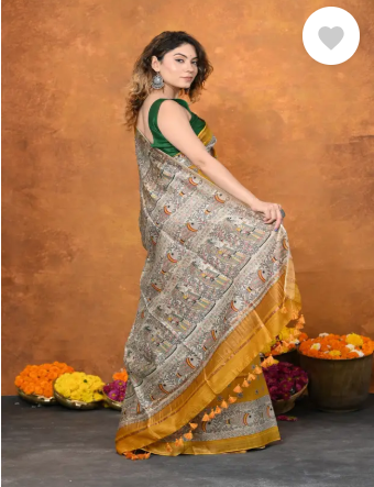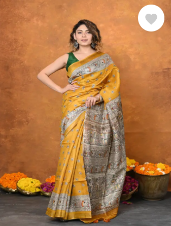 Woven Madhubani Tussar Silk Saree (Yellow)