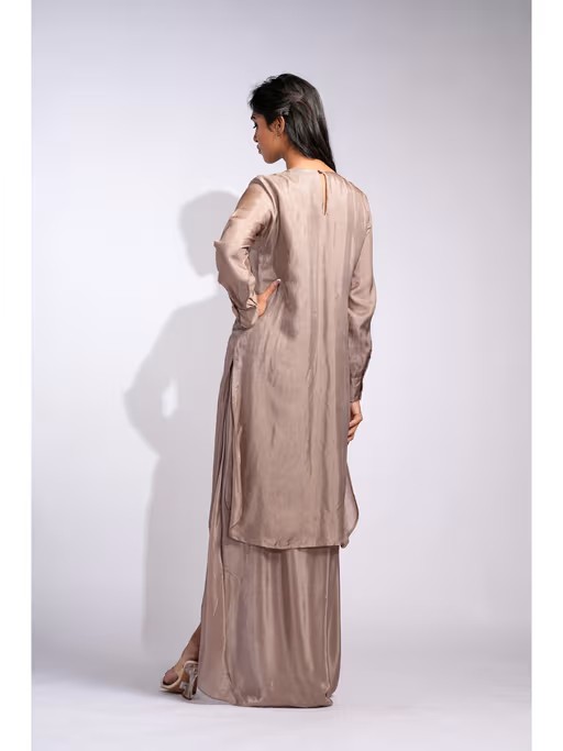 Every Figure, Complemented By A Beautifully Embroidered Neckline Adorned with Sequins and Dabka Work. The Kurta Is Crafted In Luxurious Silk Fabric, Offering Both Breathability and Opulence. Paired with Silk Skirt, This Ensemble Exudes Sophistication and Style. At Shruti S, We Prioritize Bespoke Tailored Outfits, Ensuring That Every Piece Fits Perfectly and Enhances Your Natural Beauty. This Stunning Suit Is Perfect for Weddings, Sangeet, Dinners, or Any Festive Occasion. Whether You're Attending Cocktails or Parties, This Outfit Will Make You Stand Out Effortlessly."