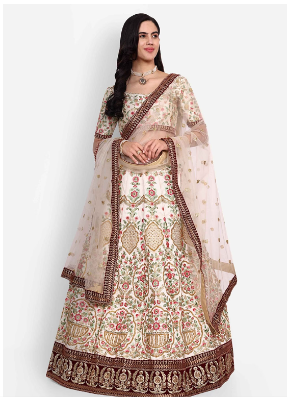 Make a graceful statement in this Off White Thread Sequin Embroidered Art Silk Lehenga Set, featuring intricate embroidery on luxurious silk. Ideal for special occasions, this elegant ensemble combines timeless design with rich texture for a truly regal look.