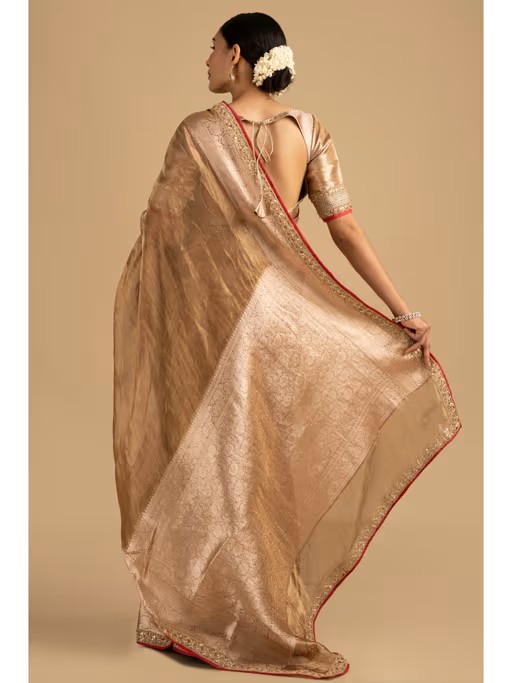 This Exquisite Banarasi Handloom Saree Is A Must-Have To Your Wardrobe. Adorned With Intricate Zari Patterns And Rich Tissue Silk Fabric, This Saree Adds A Touch Of Sophistication To Your Persona. Pair This Saree With A Stylish Blouse To Get A Classy Look.