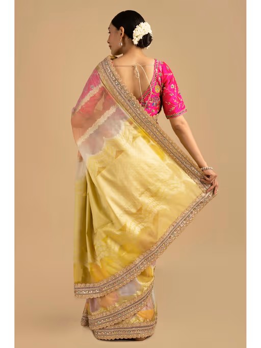 Adorned With Aesthetic Floral Art, Involving Precisely Created Designs Using Digital Tools, This Saree Enhances Your Overall Persona With Its Classy Colour Combination. This Art Perfectly Blends Modern Technology And Traditional Floral Aesthetics, Creating An Imaginative Visual Representation Of Flowers.
