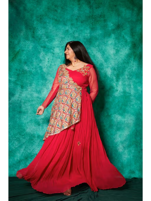 Give Yourself A Flattering Look On Special Occasions With This Saaj By Ankita Magenta Anarkali Gown With One Sided Cape. Tailored From High-Quality Fabric In A Comfortable Fit, Featuring Beads And Stones Work With Full Sleeves, V-Neck Style. This Is A Must-Have Wardrobe Piece.