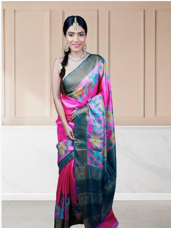 Handwoven Pure Katan Silk Banarasi Saree With Unstitched Blouse Material - Suitable For All Indian Occasions,Wedding and Festivals