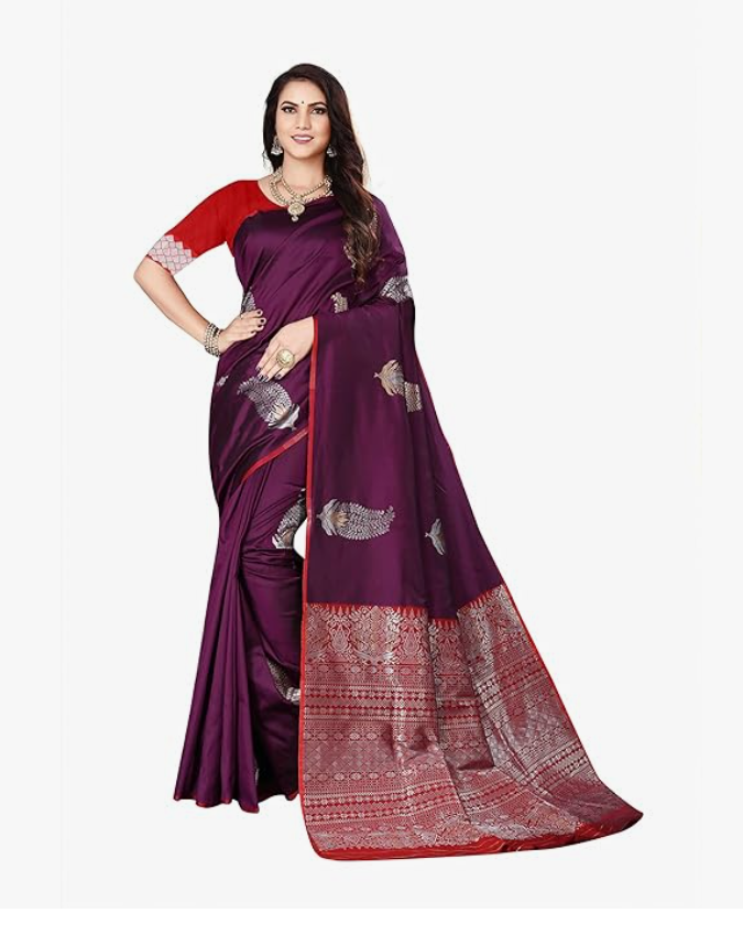 SAI FASHION Isai STORE Silk Wedding Saree Silk Stylish Pattern Blouse Thread Saree, Red