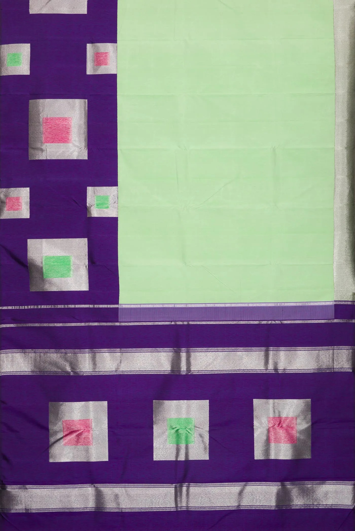 Sea Green Dual Tone Kanchipuram Silk Saree with Plain Body and Fancy Border. Includes unstitched blouse.