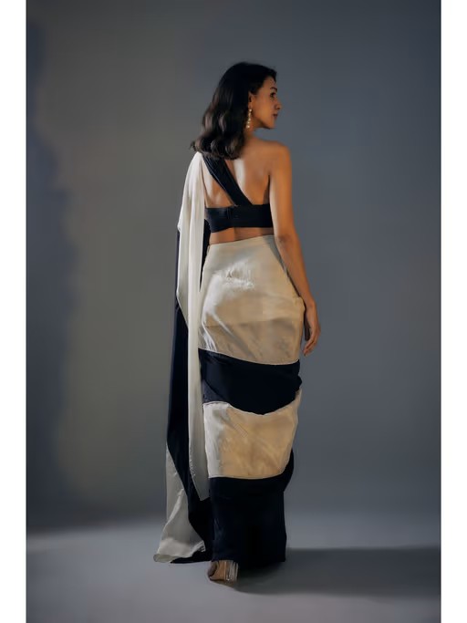 Channel your inner diva with this multi-color saree from Masumi Mewawalla. Crafted from tissue, this saree features an exquisite colorblock design, paired with a lovely sleeveless blouse. Style it with a pair of heels and diamond earrings for an elegant and soft look.