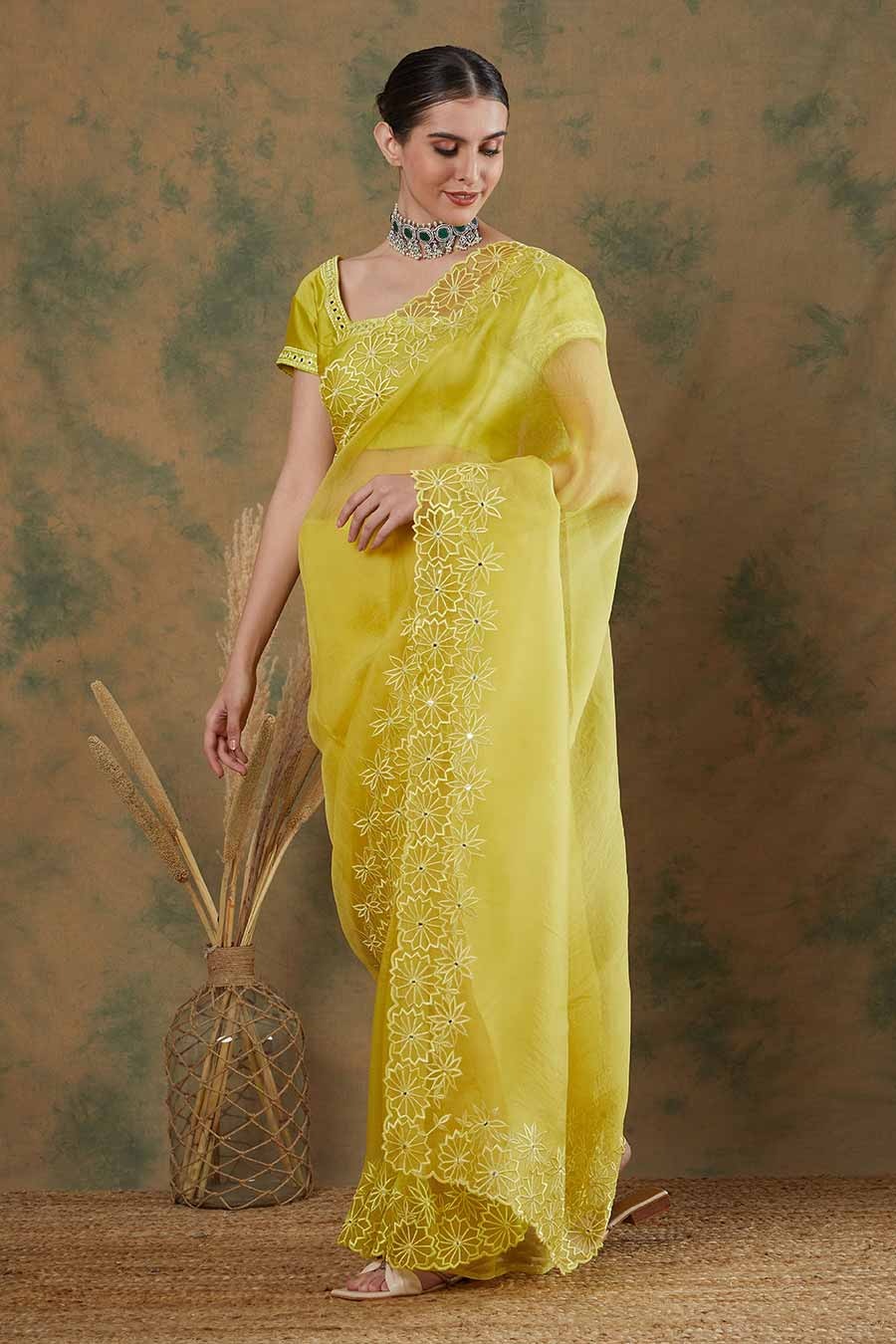 Lime Embroidered Saree Set