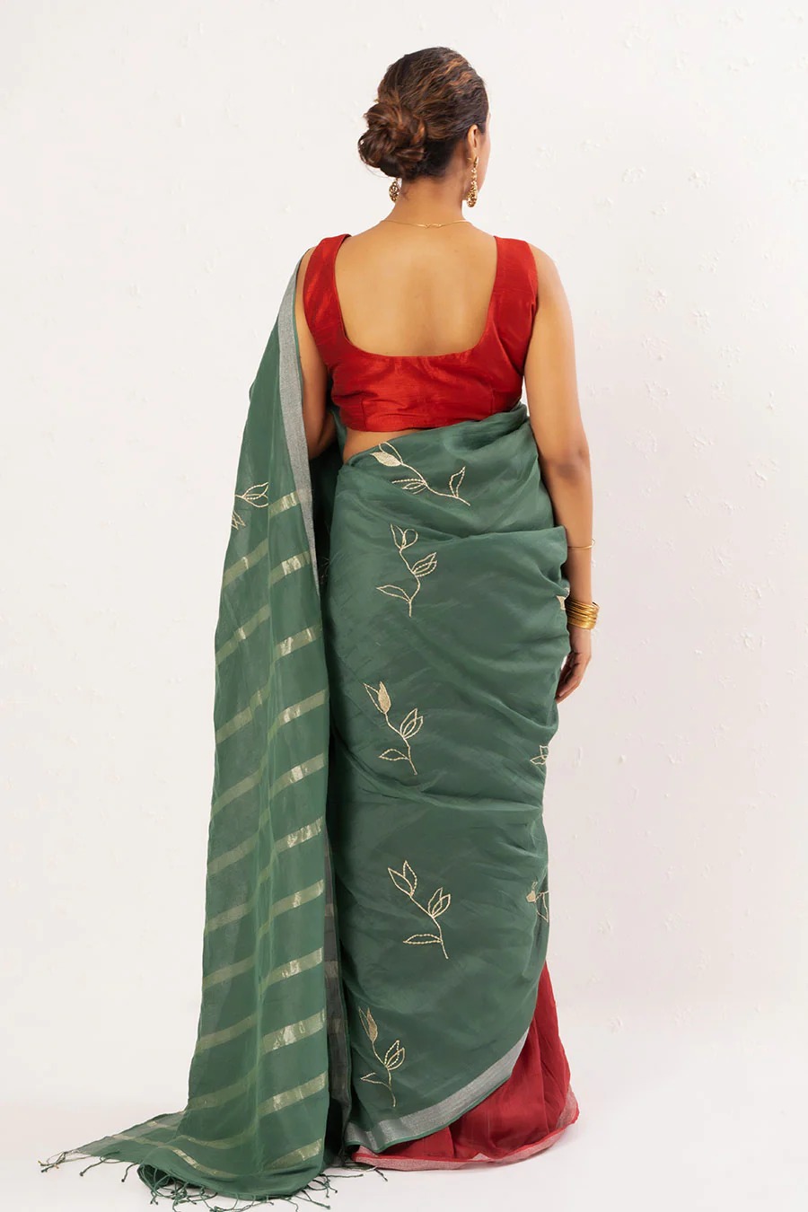 • Maroon saree with green aanchal