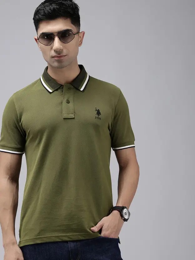Men Solid Mandarin Collar Cotton Blend Light Green T-Shirt