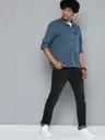 Men Slim Fit Solid Cut Away Collar Casual Shirt