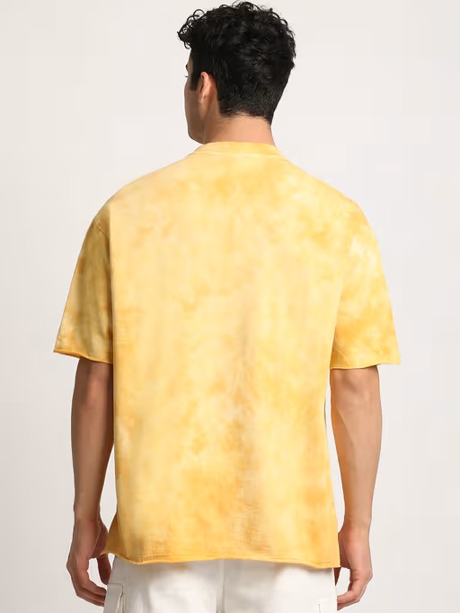 Look your stylish best in this trendy yellow t-shirt from the latest collection of THE BEAR HOUSE. It features a tie & dye pattern with half sleeves, round neck style. The youthful and fashionable design, high-quality and soft fabric.