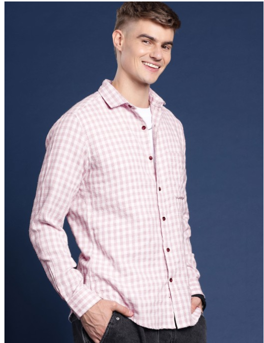 Rose other checks checked opaque Casual shirt ,has a spread collar, button placket, long regular sleeves, curved hem
