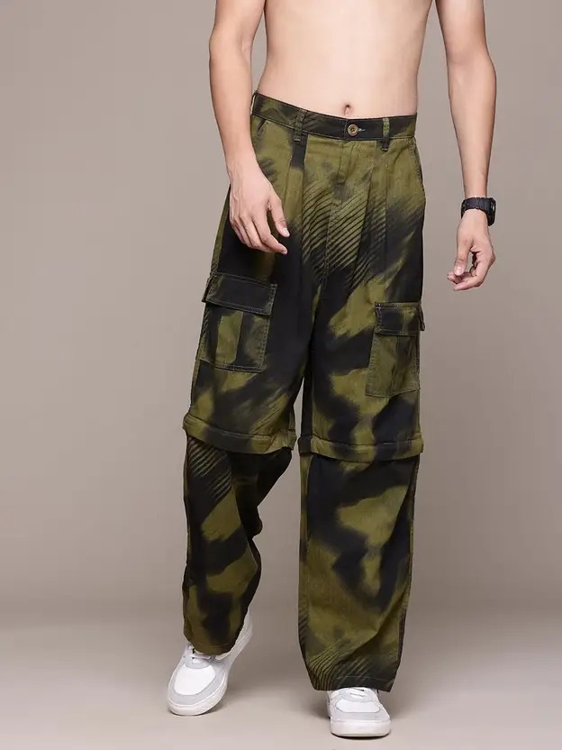 Men Regular Fit Green Cotton Blend Trousers