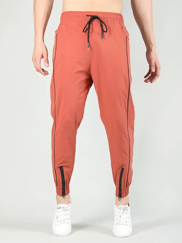 Men Solid, Striped Orange Track Pants