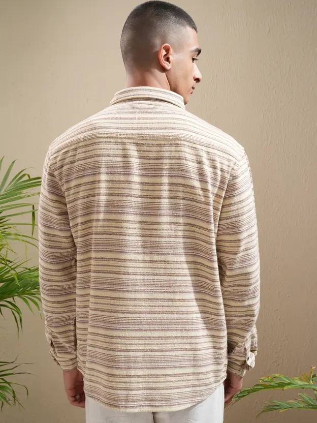 Men Relaxed Fit Fit Striped Button Down Collar Casual Shirt