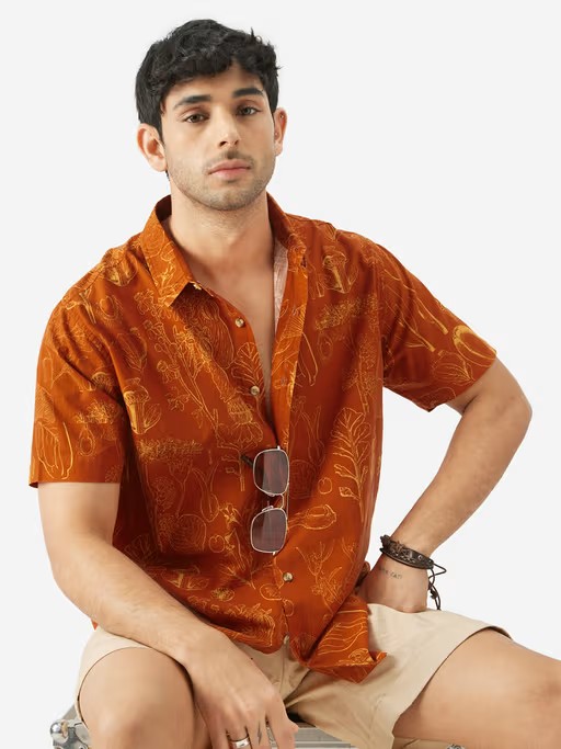 Enhance your style with this orange printed casual shirt from The Souled Store. Made from high-quality cotton, the casual shirt features half sleeves and a collar neck. Style it with denim and shoes to complete the ensemble.