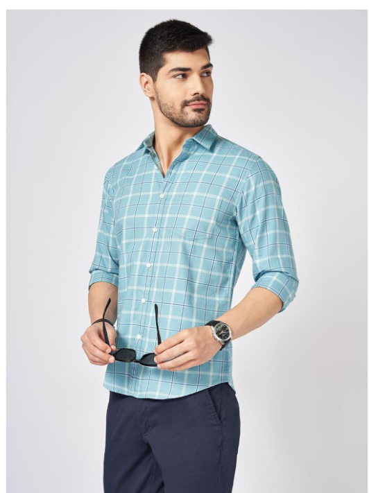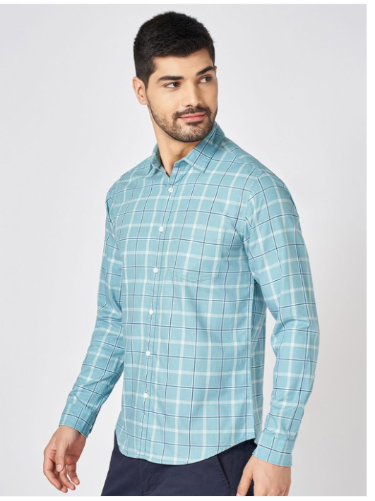 Green other checks solid opaque Casual shirt ,has a spread collar, button placket, 1 pocket, long regular sleeves, curved hem