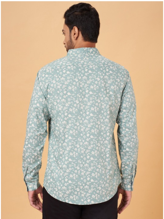 Green floral printed opaque Casual shirt ,has a spread collar, button placket, 1 pocket, long regular sleeves, curved hem