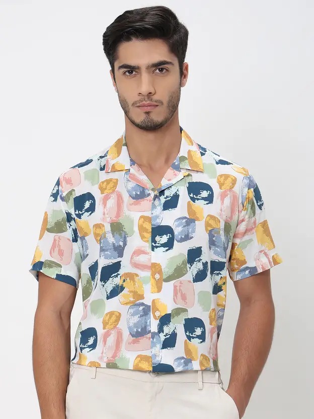 Men Slim Fit Printed Spread Collar Casual Shirt