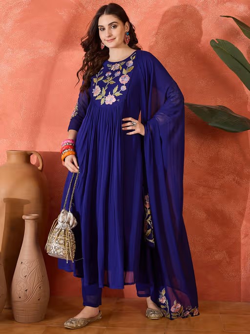 KVS Fab Women Blue Embroidered Kurta with Pant and Dupatta