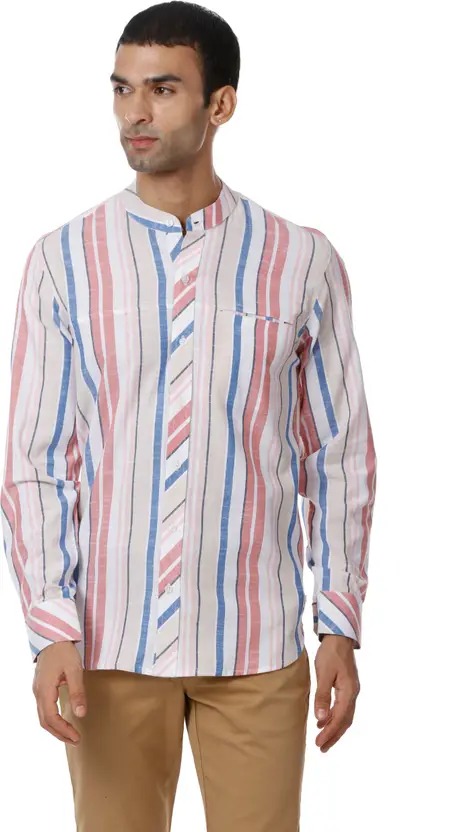 Men Regular Fit Solid Mandarin Collar Casual Shirt