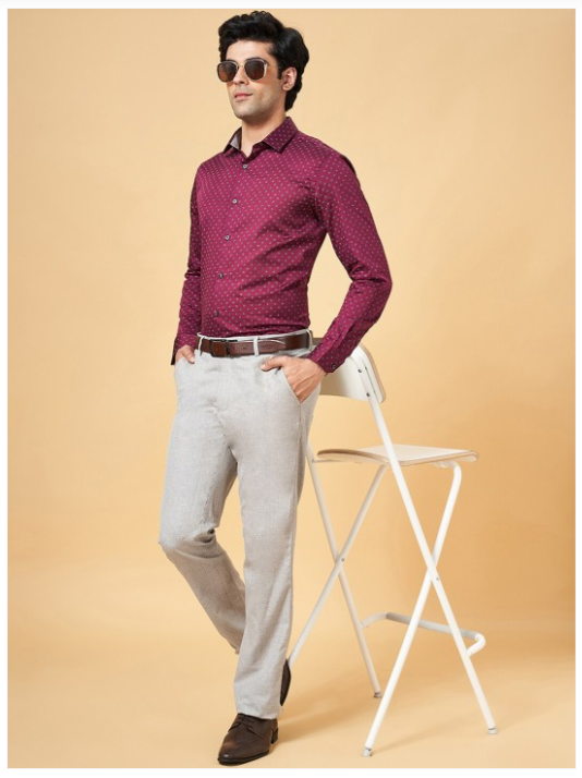 Red micro ditsy printed opaque casual shirt ,has a spread collar, button placket, long regular sleeves, curved hem