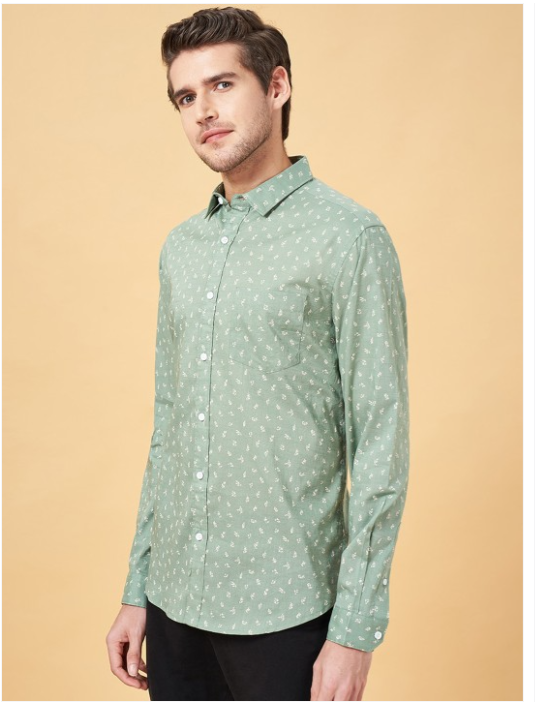 Green floral printed opaque Casual shirt ,has a spread collar, button placket, 1 pocket, long regular sleeves, curved hem