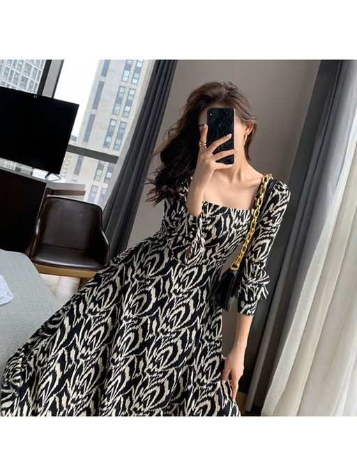 Women Black Printed Midi Dress