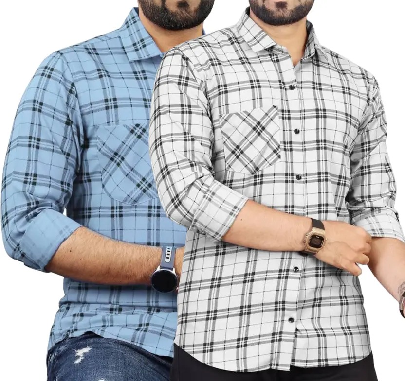 Men Regular Fit Checkered Spread Collar Casual Shirt (Pack of 2)