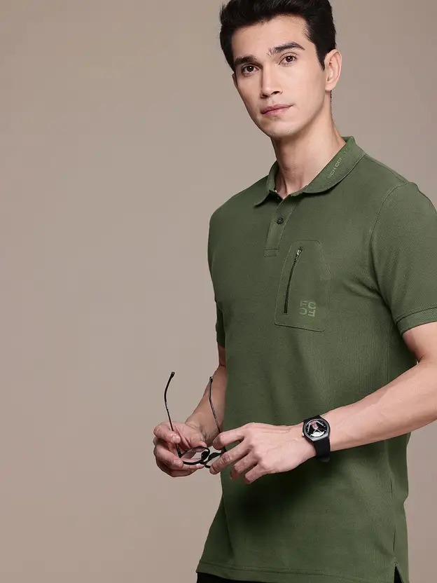 Men Solid Polo Neck Pure Cotton Green T-Shirt
