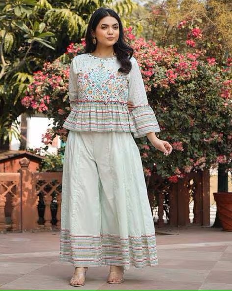 Women Embroidered Top & Palazzos Co-Ord Set