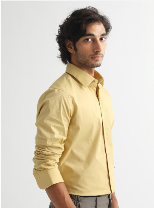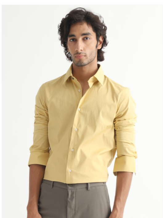 Yellow solid opaque Casual shirt ,has a spread collar, button placket, long regular sleeves, curved hem