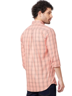 Men Slim Fit Checkered Spread Collar Casual Shirt